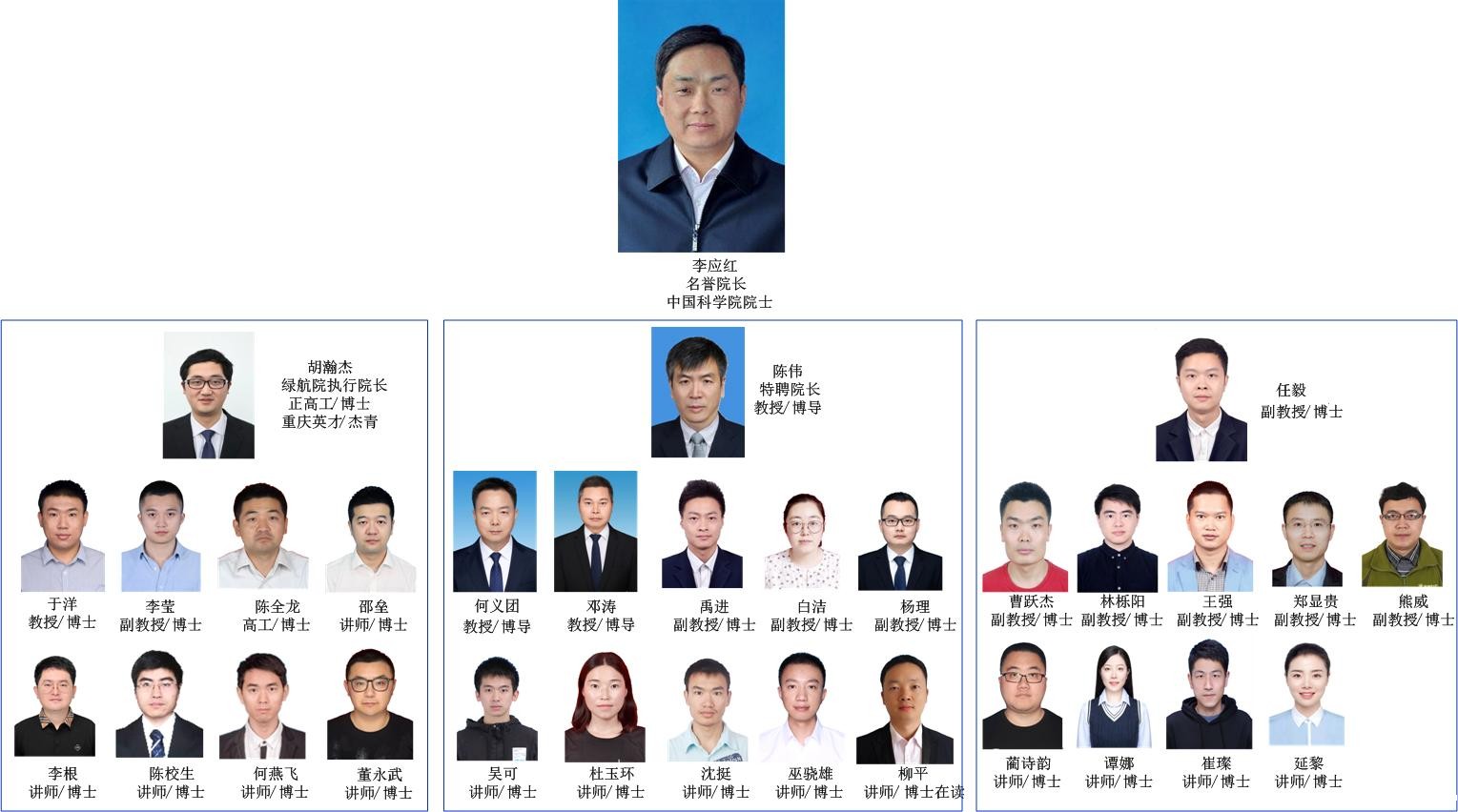 柔性引进中科院李应红院士担任重庆航空学院名誉院长,连续4年为航空学子讲授开学第一课。广泛吸纳优秀人才,形成一支以院士领衔的高水平师资队伍,其中省部级以上人才14人,高级职称40余人,专任教师博士率超过95%,承担飞动、飞制、飞设三个专业主干专业课程及学科方向建设。