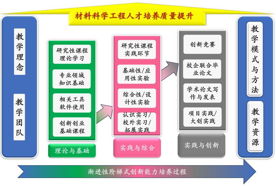 新课程内容:通过“材料·青春之约”专题讲座和微课,建立工程教学与学校企业信息共享平台。开展多层次创新课程,整合理论、实验、设计和实习环节,采用链条式教学模式,由专业教师授课。建设虚拟仿真和实践平台,丰富教学资源,提升学生创新能力和思维。