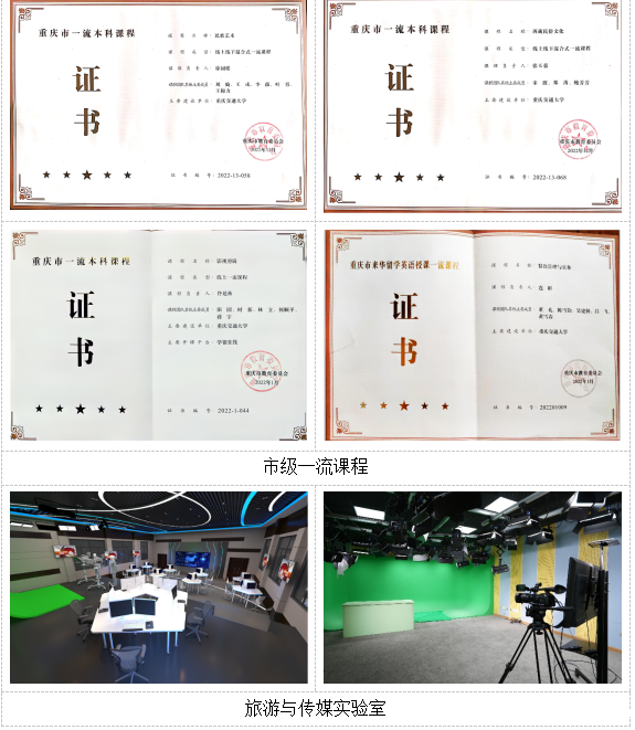一是优化人才培养方案和教学大纲。修订了人才培养方案和教学大纲,“文旅+交通”的课程体系和课堂教学特色鲜明。二是持续改善师资力量。近年先后引进8名优秀博士,教师中3人被评为重庆英才,11人晋升高级职称。三是加强课程建设。一流课程建设成果显著,建成《桥梁文化》等2门市级精品课程,建成市级一流课程4门,并获推荐国家级一流课程1门。四是不断完善实践教学条件。学院建有旅游与传媒实验教学中心。中心下设专业实验室与特色实践场所:融媒体中心、视频制作实验室、录音室、后期编辑室、网络与新媒体中心、多媒体设计实验室、平面设计实验室、中国文化体验中心及餐饮客房实训室等,形成了全方位、多层次的实验教学体系。同时,中心拥有一支高素质的教学团队,包括2名专职实验人员及9名教研室兼职实验教师,其中高级职称教师占比超过半数,为教学质量提供了坚实保障。五是拓展校外教学资源。学院与重庆市内外相关文化旅游、交通等部门和企事业单位建立了良好的校企合作关系,有力支撑了“文旅+交通”人才培养。