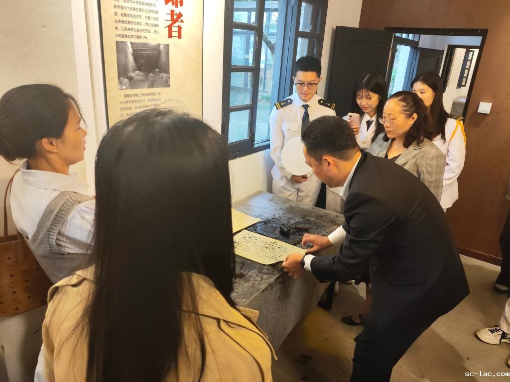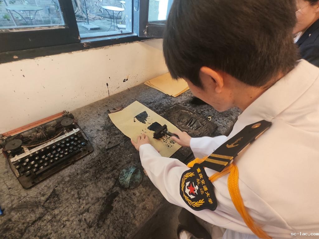活动现场,师生党员们还经历了一次非同寻常的体验——在工作人员的悉心指导下,他们亲手参与了油墨拓印这一独特环节。通过亲身体验《挺进报》的印刷全过程,党员们深切感受到了红岩故事中革命先辈们那份坚定不移的信念与慷慨激昂的情怀,以及当初在白色恐怖下坚持办报的艰难。这次体验不仅仅是一次简单的复刻,更是一场跨越时空的心灵对话。从精心挑选纸张到细致印刷,每一个步骤都凝聚着革命先辈的智慧与汗水,每一步都仿佛是在与那些伟大的灵魂进行一次深情的交流。
