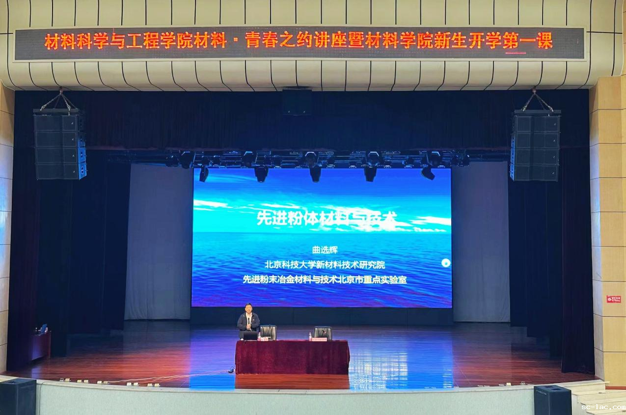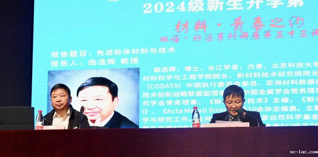 为拓宽新生科学视野、提升学生科学研究热情,材料科学与工程学院邀请北京科技大学曲选辉教授,于10月10日晚上7点在科学城校区学生活动中心二楼报告厅举行材料·青春之约系列讲座第三十三讲暨材料学院新生开学第一课。会议由校党委副书记郑旭煦主持,材料学院党委书记周平、院长王俊杰、副院长郭鹏、学生辅导员、教师代表以及学院2024级全体本科生和研究生出席了会议。
