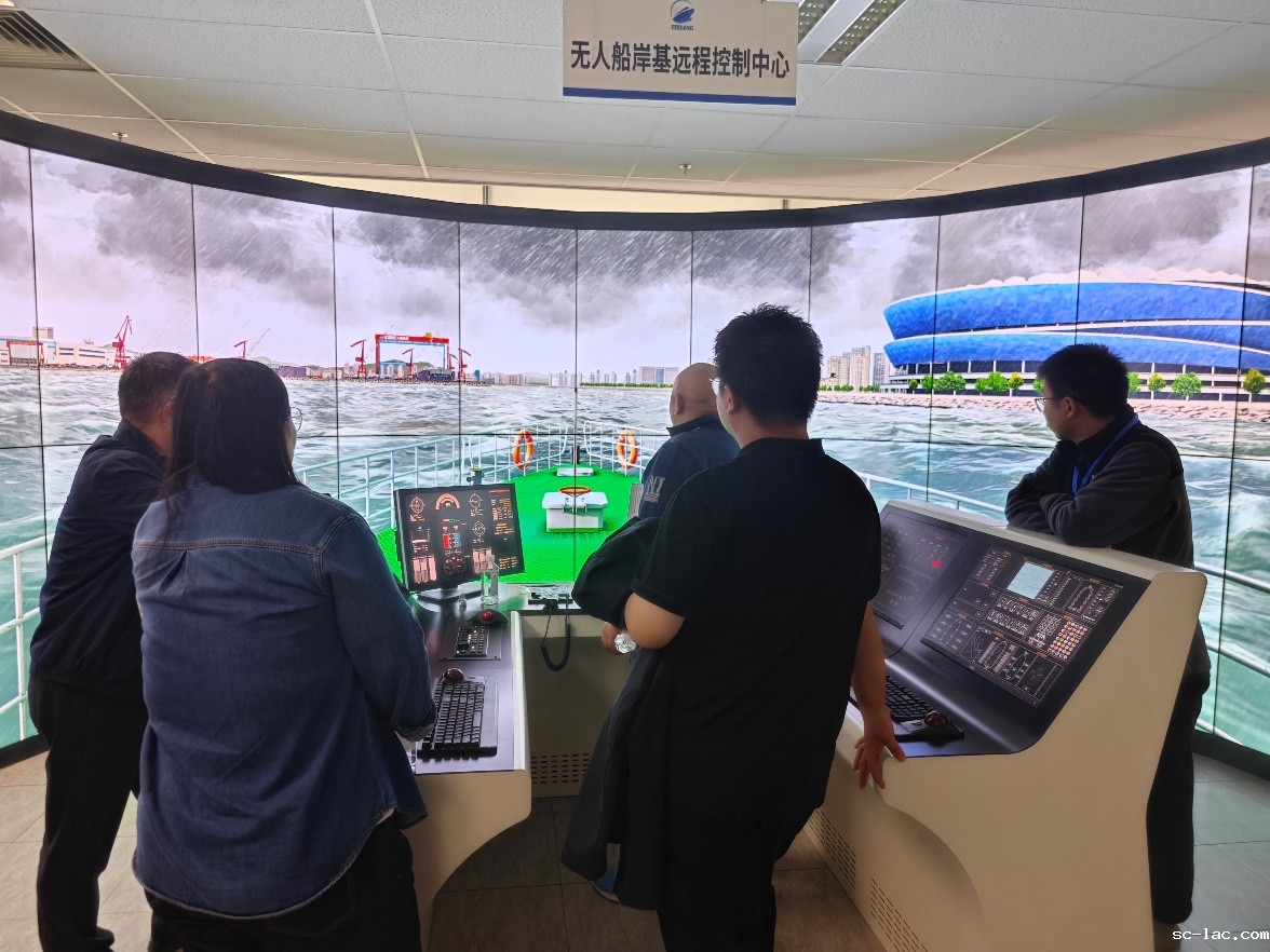 研修班还安排了宝贵的实践环节,分别是参观由大连海事大学牵头建设的全球首艘集远程遥控、自主航行及科研实训功能于一体的智能船舶“新红专”轮,以及大连海事大学与相关校企的“航海模拟器、轮机模拟器”。老师们分别在模拟器上体验了驾驶游艇避让桥墩、LNG船发动机点火到油-气转换设备操作。模拟驾驶环节,雍老师驾驶20分钟不到就出现晕船和呕吐症状,深切体会到复杂海况及船上工作环境的不易。