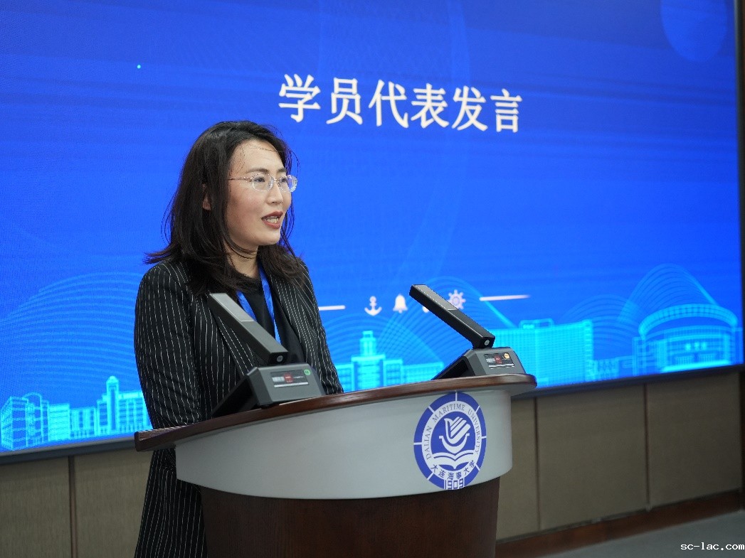 雍青青老师被选为研修班学员代表,在开班仪式上进行了致辞。雍青青在致辞中提到,作为航运业的高校教师,肩负着教书育人与科技创新的使命。当今世界科学已发展到了学科交叉融合的新阶段,航运业的智能低碳技术亦是在原有学科基础上融合了材料、力学、自动控制、数学算法等知识。只有不断跟进行业前沿,积极拓展自身研究边界,践行产学研协同,才能培养出适应世界发展的新时代人才。与此同时,我们的人才培养方案该做出怎样的调整,人才培养模式该如何创新,需要不断思考、探索与尝试。