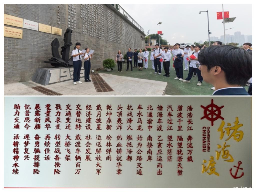 2024年10月25日下午,航运学院党委组织60余名入党积极分子、发展对象等,来到今年3月份新晋为老伟德网上娱乐航海类专业教学实训基地的重庆市车渡管理站,以“扬帆启航新时代·党旗领航育英才”为主题开展红色研学实践活动,学院党委书记周德贵、正处级组织员兼纪委书记李世佼、本科生第三党支部书记曾丽琴等出席。机关党委委托送培学员基建处蒙真骁和财务处张浩两位老师也参加了本次活动,学员们通过实地参观、互动讨论和朗诵演讲等形式,深刻体验了车渡精神的历史底蕴与时代意义,增强了对党的历史和红色文化的理解,进一步激发了坚定理想、航运报国、逐梦深蓝的决心与壮志。