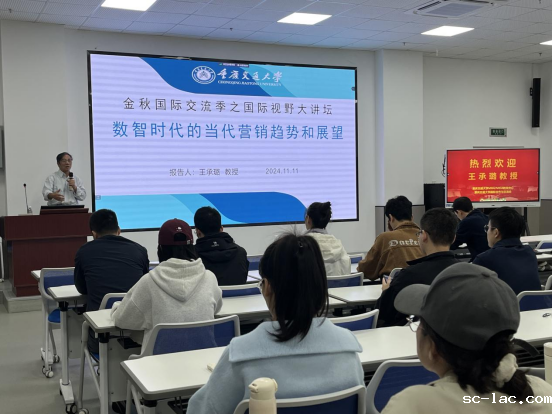 2024年11月11日,由MBA/MEM教育中心、国际合作与交流处共同主办的国际视野大讲坛成功举办,美国纽黑文大学商学院王承璐教授应邀为我校师生作了题为“数智时代的当代营销趋势和展望”的学术报告。本次活动由MBA/MEM教育中心主任肖伟教授主持,全校200余名师生参与了此次学术活动。