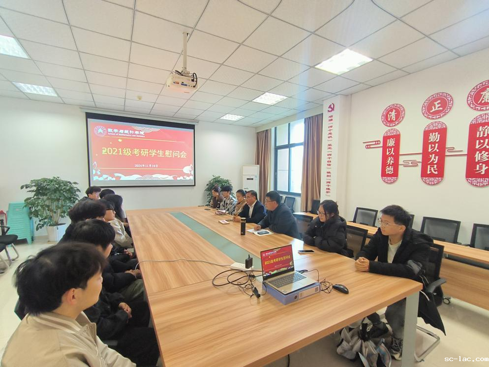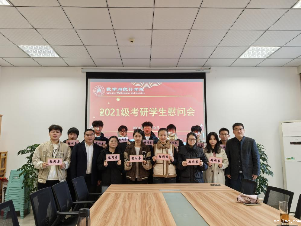 在全国硕士研究生初试即将拉开帷幕之际,为有效缓解考研学子们的备考压力,提振他们的考研士气,数学与统计学院于11月19日下午在致远楼404会议室温情举办了“2021级考研学生慰问座谈会”。此次座谈会由学院党委副书记马在亮主持,学院党委书记刘君、毕业班辅导员张颜以及2021级部分考研学生代表参加了此次座谈会。