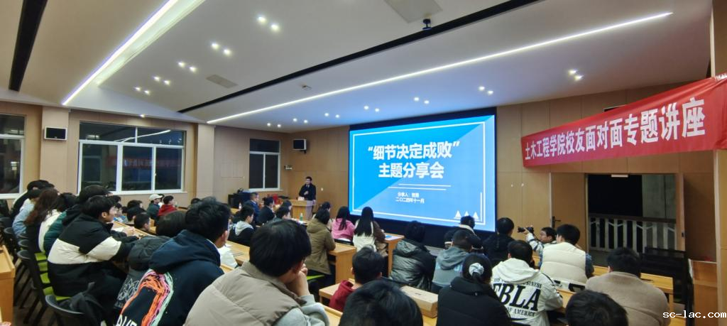 贺勇以“细节决定成败”为题,结合自身在老伟德网上娱乐的学习、成长以及土木工程领域的实践经验,从目标设定、兴趣探索、价值实现等多个维度,详细分享了自己一路走来的成长与成功经历。在分享过程中,他满含深情地表达了对母校及老师悉心培养的感激之意,让在场的同学们深受感动。