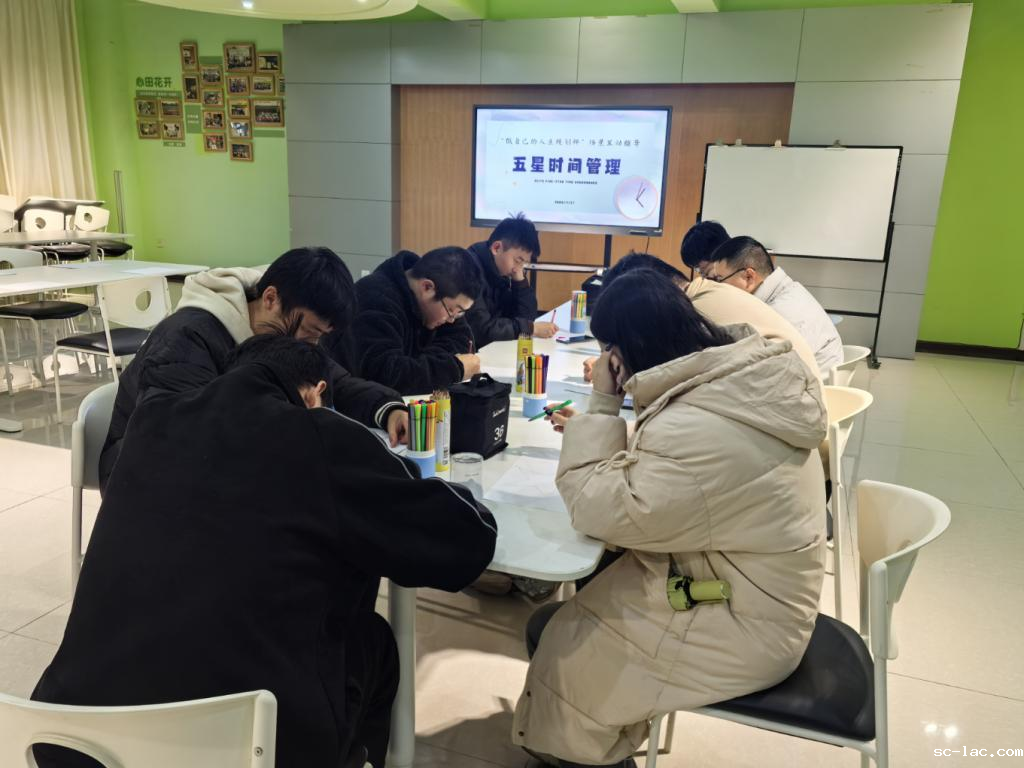在活动中,吴燕老师深入浅出地讲解了“五星时间管理法”。这一方法是一种独特的评估体系,它利用五个维度来评价和归纳时间的投入及重视程度,从而为个人提供一个直观的时间使用概览。同学们在老师的引导下,亲手绘制了自己的五星时间图,这不仅让他们清楚地了解到自己日常时间的具体分配,还揭示了一些平时容易忽视的问题,例如社交媒体使用的过度、家庭交流的缺乏以及未来规划的不足等。