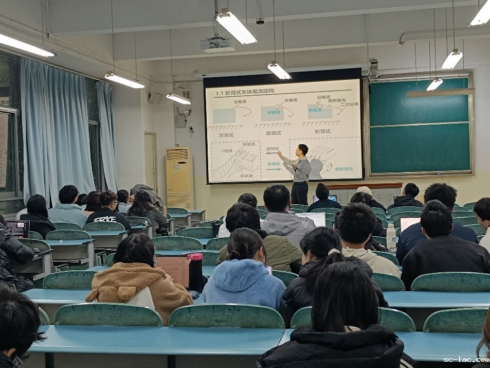 最后,何侃研究员结合自己的丰富的研究工作,给同学们介绍了流体力学在载运工具流场分析中的发现一些有趣的现象,以及通过现象的挖掘研究发现的有趣规律;同时,结合自己的瑞典留学经历,分享了科学研究过程中解决问题的一些方式,并与同学们进行了交流互动。