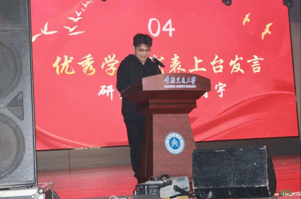 接下来,研究生新生代表肖宇、本科生新生代表敖璐和获奖学生代表安家辉陆续上台发言,他们表示深感荣幸能作为学生代表上台分享感言。其中,研究生新生代表肖宇以“你可能输给这场战斗,但你永远不会输给这场战争”简略表达了对自己今后能够砥砺前行、不惧风雨的期望也鼓舞着在场同学不断前行、奋斗不息。