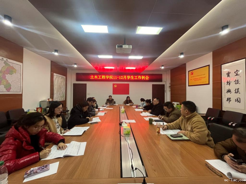 土木工程学院党委副书记蒋攀传达学习了学校党委常委、学生工作部叶勇部长,学校党委常委、副校长张铭在全校学生工作联席会讲话要求,通报分析了前期学院接受本科教育教学审核评估的情况,对全体老师积极付出所取得的成效表示感谢,对当前期末需要做好的工作提出了以下希望和强调:一是认真做好年末岁初的学生安全稳定和意识形态工作,要经常性深入学生宿舍关心慰问学生。二是认真落实工作下沉和闭环管理,狠抓提升工作成效,对学校通报的情况要认真逐一落实形成报告材料。三是主动加强思考和谋划工作,坚持抓好学风建设。四是要主动总结和凝练工作经验,进一步打造学生工作品牌。五是不断增强工作能力,形成推进工作的制度办法。