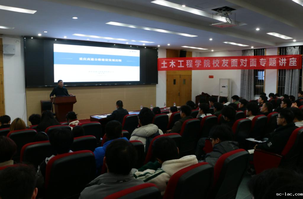 讲座伊始,邸小勇校友以自身学习和工作经历为切入,分享了在道路工程领域的成长故事。从重庆市交通规划勘察设计院到重庆市交通委(局),再到重庆高速集团,邸校友在高速公路勘察设计、公路工程项目建设管理、高速公路技术审查与审批等多个领域积累了丰富的实践经验,对交通运输行业有着深刻的理解。