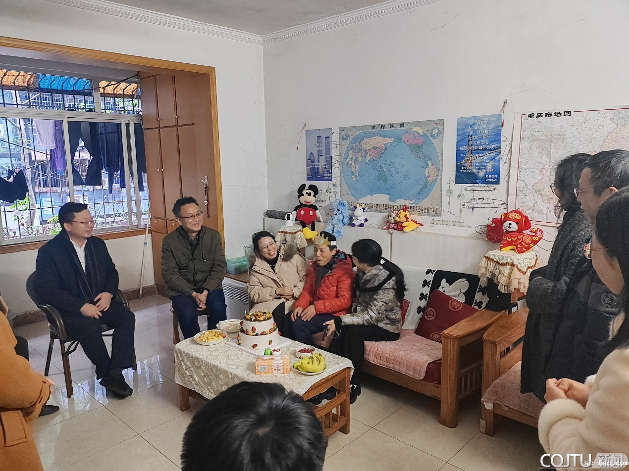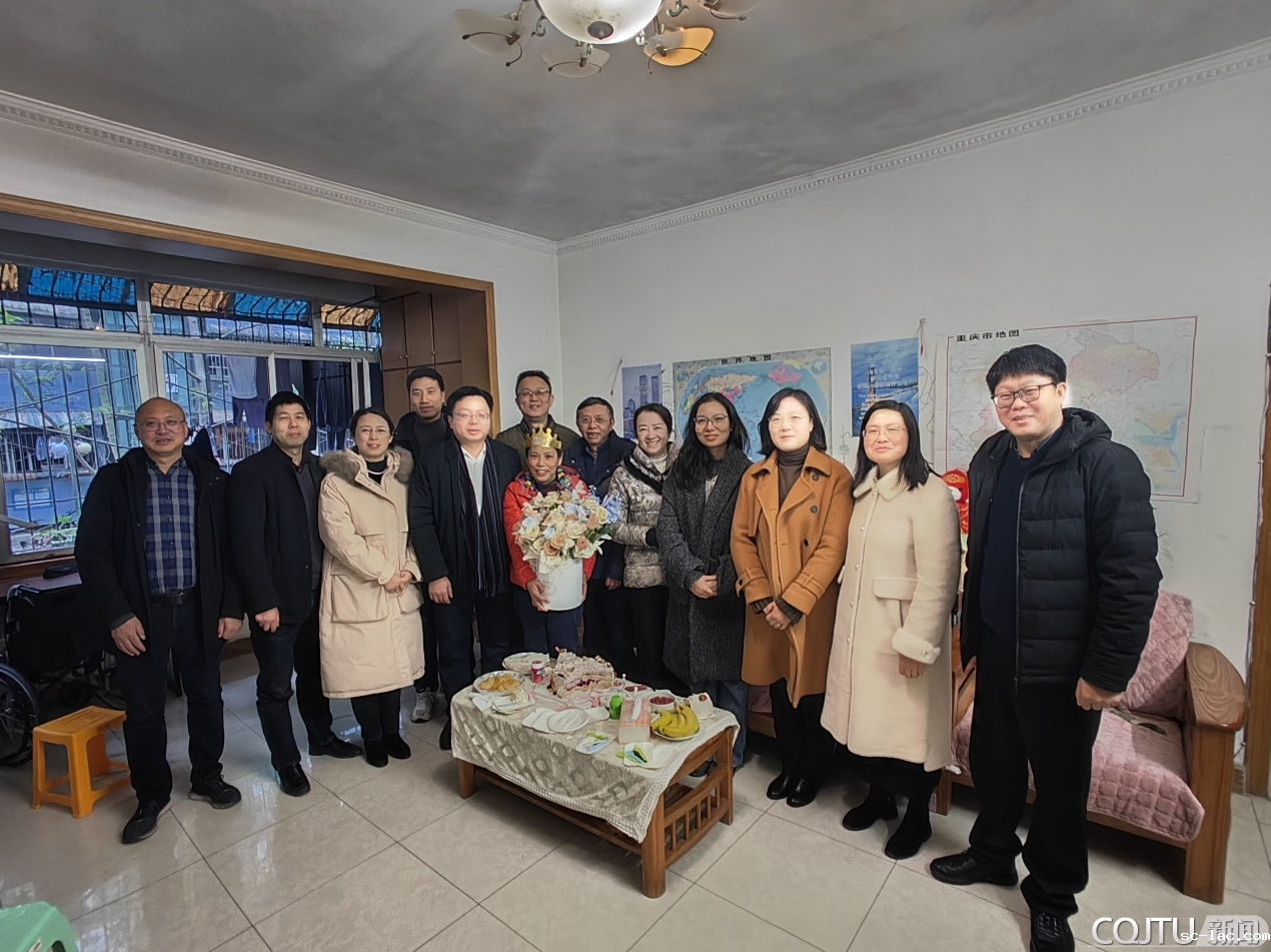 在刘老师简朴整洁的家中,学院领导班子、系室负责人及教师代表等十多人欢聚一堂,共同见证了这一温馨而庄重的时刻。他们手捧精心挑选的纪念品、绚烂的鲜花以及象征甜蜜与祝福的生日蛋糕,为刘老师送上了一份份沉甸甸的心意。