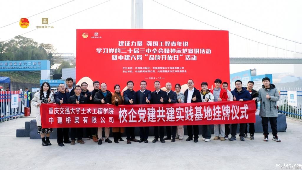 为了加强党建合作交流,实现校企优势互补、资源共享,以党建引领人才培养,土木工程学院党委与中建桥梁有限公司党建共建实践基地揭牌仪式,于2024年12月19日下午在江津区市郊铁路江跳线南主塔施工现场举行。中建桥梁有限公司党委副书记、纪委书记王宏宇,副总经理郝小朋,团委书记、工会副主席张栋,人力资源部经理武金巍等领导出席,土木学院党委书记王祥林,副院长郭增伟,党委副书记杜嘉,桥梁系主任钱骥、副主任高燕梅,以及桥梁系教工党支部党员代表和十余位学生代表共同参加揭牌仪式。