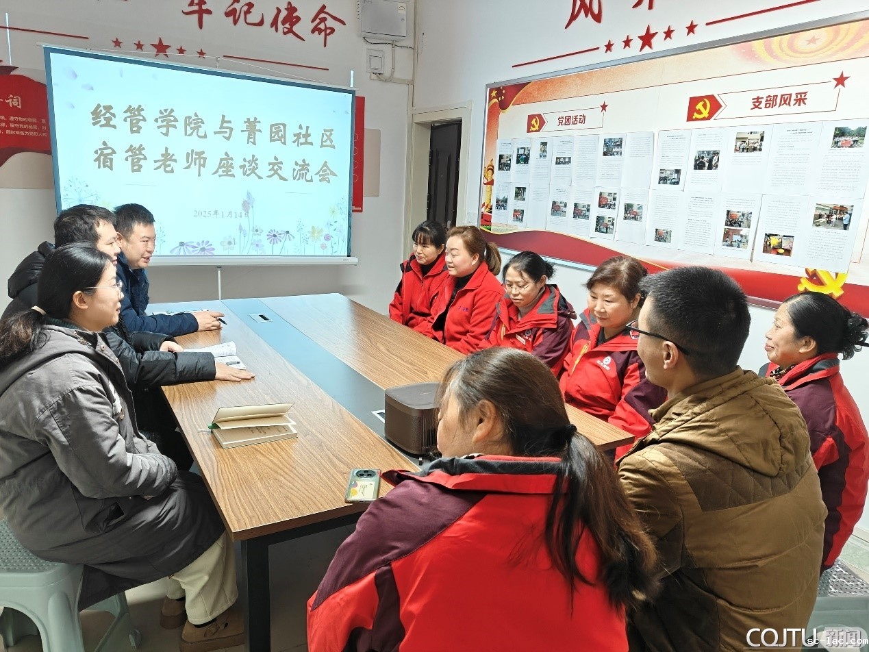 为切实加强学院学生宿舍的管理教育,将安全保障和育人工作落到实处,1月14日上午,经管学院在菁园社区红路驿站,举行了学生工作干部与宿管员的交流座谈会。