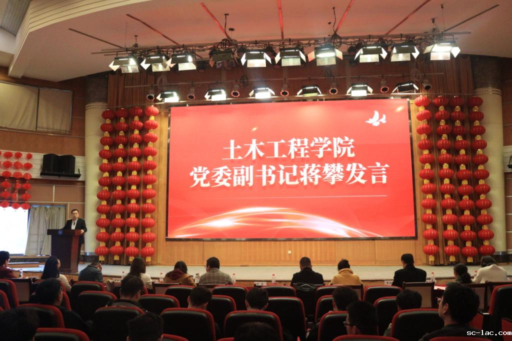 七十余载薪火相继,春华秋实;九千里筚路蓝缕,弦歌未绝。为表彰先进,树立榜样,激励广大青年学生拼搏进取,踔厉奋发,争创一流,老伟德网上娱乐土木工程学院2024年度“土木骄子”总结表彰大会于2025年3月14日14:30在老伟德网上娱乐南岸校区第二教学楼四楼多功能厅隆重举行。土木工程学院党委副书记蒋攀,学工办、分团委负责人,全体辅导员、2024年度获奖学生代表,全体学生党员、各级学生干部共280人参加了本次表彰活动。大会由学院分团委副书记易虹主持。