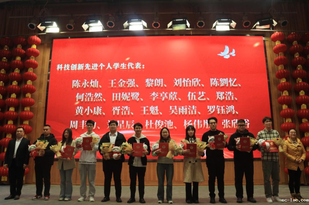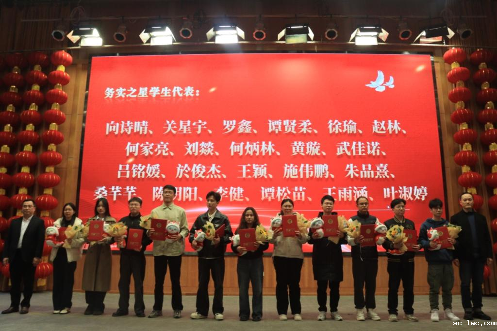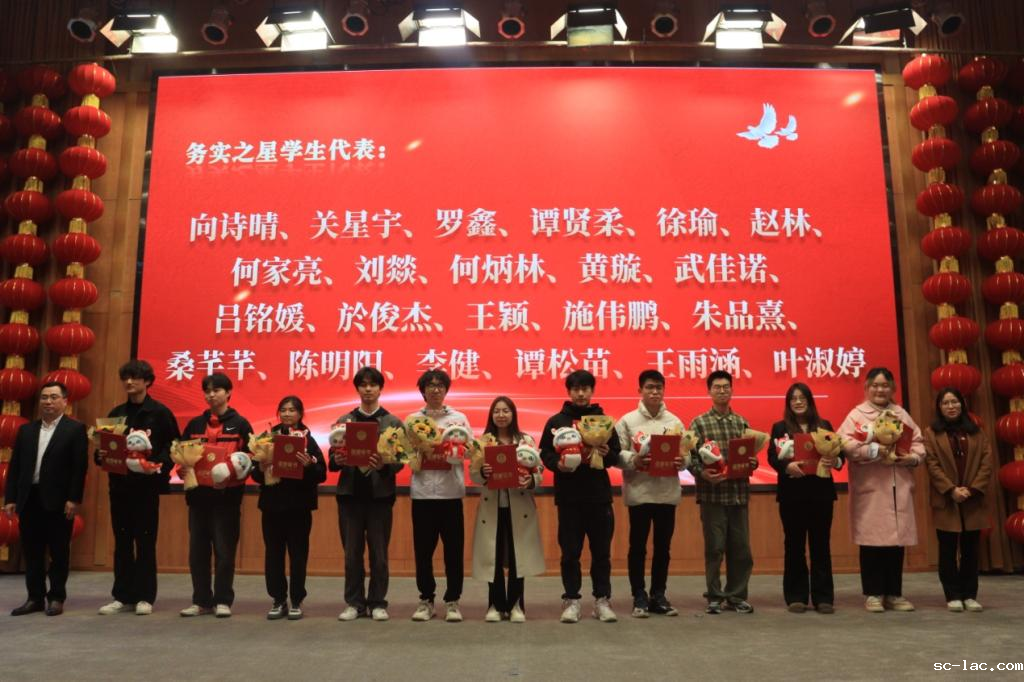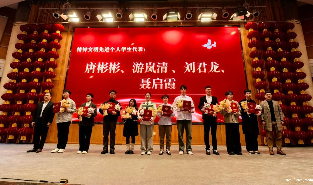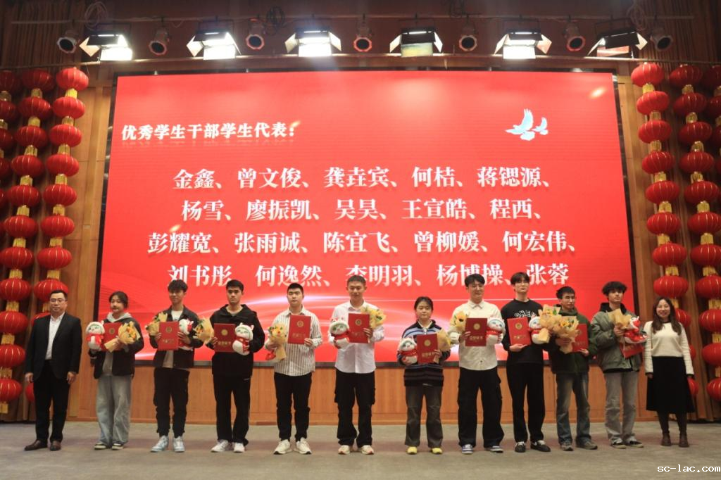 大会在庄严的国歌声中拉开帷幕。本届表彰设立10类“土木骄子”奖项",覆盖学术科研、文体活动、志愿服务等多个领域。通过基层推荐、综合评审等环节,最终遴选出100名获奖学生代表。学院党委副书记蒋攀等领导为获奖代表颁发证书,鎏金证书映照着青春风采,雷鸣掌声见证着奋斗荣光。