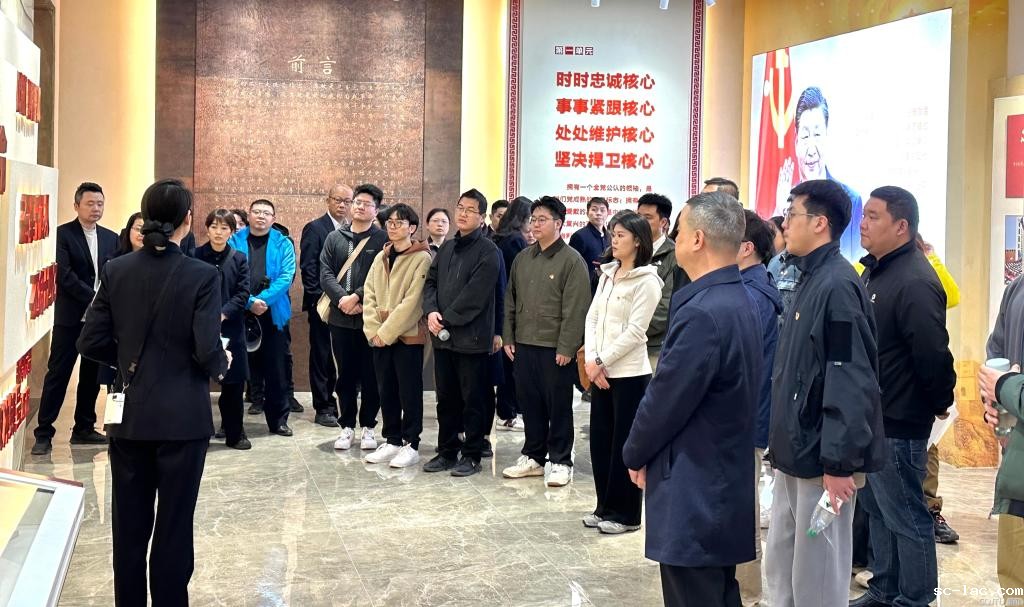 在庄严肃穆的序厅,全体党员列队肃立,面向鲜红的党旗,高擎右拳,铿锵有力地重温入党誓词。那激昂的誓言在空气中回荡,仿佛在提醒着每一位党员的初心和使命。