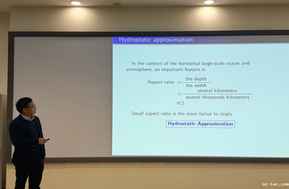 第一阶段,李进开教授以“原始方程的若干最新研究成果”为题拉开了此次研讨会的帷幕,李教授介绍了其团队在原始方程(Primitive Equations)整体适定性和弱解唯一性等方面取得的最新进展。