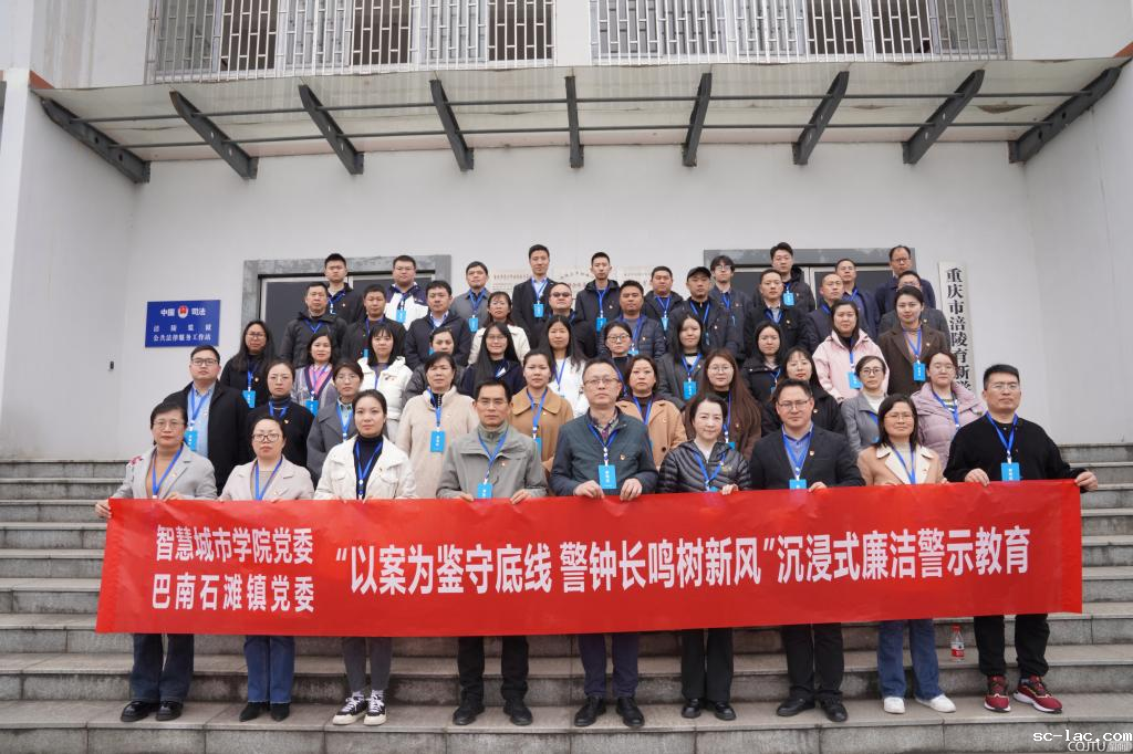 四月的涪陵烟雨迷蒙,青灰色的高墙内传来声声警钟。在全面从严治党向纵深推进、开展深入贯彻中央八项规定精神学习教育的重要节点,智慧城市学院党委与巴南区石滩镇党委以“以案为鉴守底线 警钟长鸣树新风”的坚定姿态,携手走进涪陵监狱这所特殊“学堂”。当铁门在身后缓缓闭合的瞬间,51名党员干部、师生完成了一次跨越自由与禁锢的精神跋涉。通过实地参观、观看警示教育片、观摩在押人员自编自演剧目等形式,接受了一次深刻的廉洁教育洗礼。