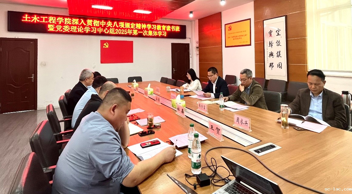 4月8日下午,土木工程学院组织开展深入贯彻中央八项规定精神学习教育读书班暨党委理论学习中心组2025年第一次集体学习。本次学习的主题是:扎实开展深入贯彻中央八项规定精神学习教育,持续加强党的作风建设,推动学习教育走深走实。学习由学院党委书记王祥林主持,中心组全体成员出席。