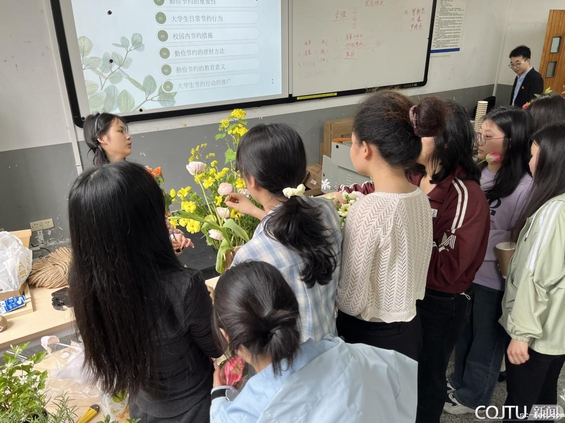 活动巧妙地将美育与劳育相结合,通过插花艺术的形式,让同学们在动手创作的过程中,提升审美能力,更在劳作中体会劳动的乐趣与价值。在活动开场时,主持人还特别宣讲了大学生如何厉行勤俭节约,让同学们在享受活动的同时,深刻认识到勤俭节约的重要性,进一步培养同学们的节约意识和环保观念。