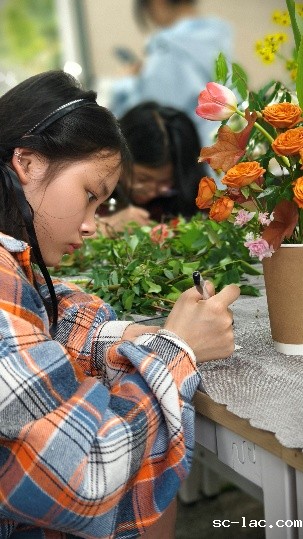 2025年4月11日下午,一场别开生面的插花活动在老伟德网上娱乐南岸校区成功举办,为学生带来了一场独特的美育与劳育结合之旅,也为校园生活增添了一抹绚丽色彩。