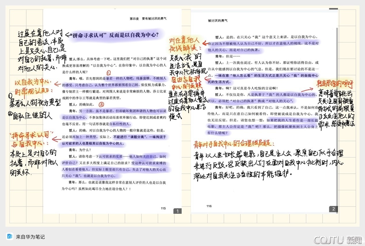 活动吸引了众多渴望突破自我、缓解压力的学生踊跃参与。在4月13日至20日、4月25日至5月1日的活动周期内,同学们先后深入研读《认知突围》《被讨厌的勇气》两本心理学著作,通过线上打卡、小组讨论、主题分享等多种形式,积极分享自己的阅读感悟与成长故事,在书香中寻找缓解学业压力、重塑自我的有效途径。