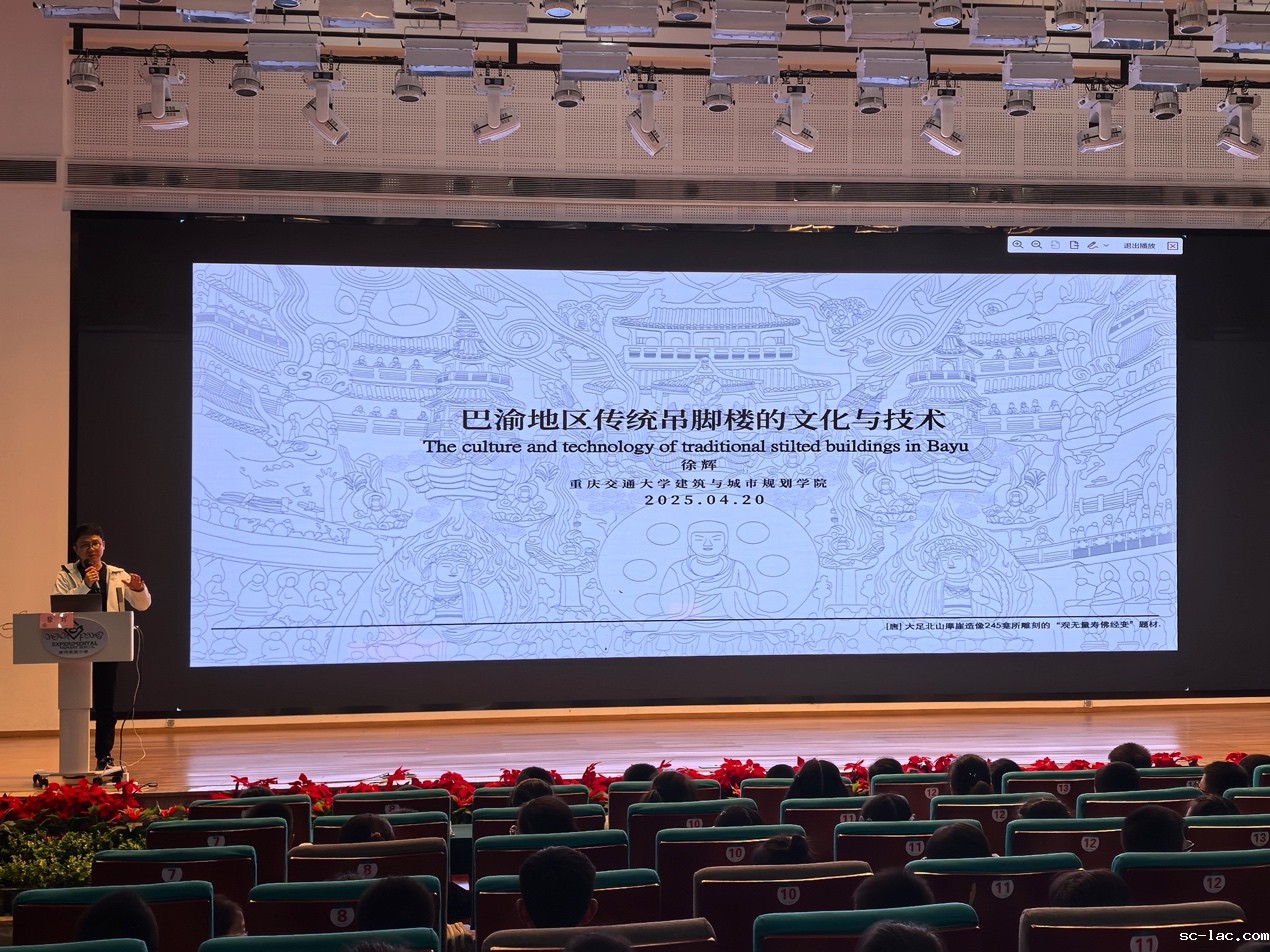 徐辉老师从历史溯源、地理适应、营造智慧、文化符号和现代启示五个维度,系统阐释了巴渝吊脚楼蕴含的跨学科智慧,展示了传统文化与营造技艺的独特魅力,引起学生们的浓厚兴趣,为少年学子了解中华传统建筑智慧、探寻文化遗产活态传承提供了学术视野与实践路径。报告内容丰富、通俗易懂、见解独到,赢得了参会者的高度评价和热烈掌声。