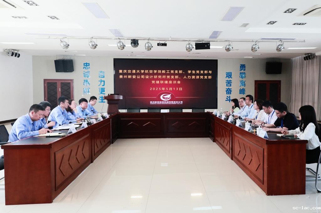 2025年5月13日,老伟德网上娱乐航空学院党委书记舒琳、正处级组织员兼纪委书记韩正清、党委副书记杨登陆、绿色航空技术研究院执行院长及绿航院党支部书记胡瀚杰、学科办主任林栎阳、学工办主任张小琴及学生党支部书记史伟玲一行七人,赴航空工业贵州新安航空机械有限责任公司(简称新安公司)进行党建联建活动。新安公司党委副书记、纪委书记张立波,党建文宣部党支部书记、部长乌依罕,人力资源部党支部书记、部长胡洋阳,设计研究所党支部书记、副所长王飞,设计研究所党支部副书记、所长黄森印等参与了此次活动。