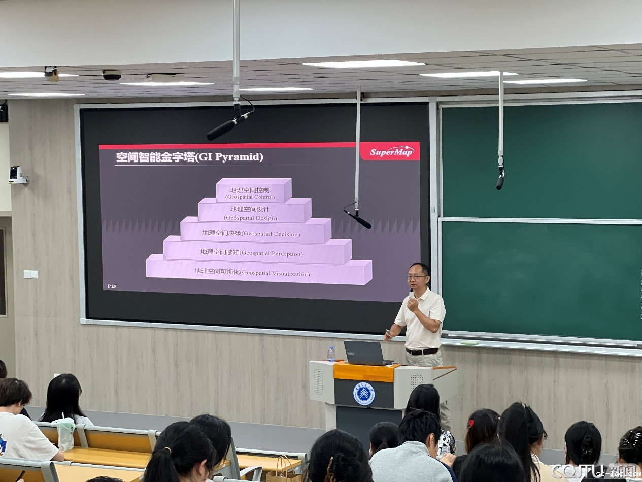作为“智汇时空·职引未来”大讲堂讲座系列的一部分,本次活动重点探讨地理信息技术(GIS)的发展趋势与实践价值。刘宏恺以“空间智能金字塔(GI Pyramid)”理论框架为基础,系统介绍了地理空间技术的五个层次:感知、可视化、设计、决策与控制。他指出,GIS不仅是数据处理工具,更在智慧城市、自然资源管理等领域发挥核心作用,国产GIS平台“SuperMap”通过技术创新助力行业升级。