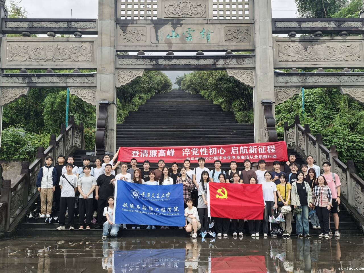 为弘扬崇廉风尚、涵养清风正气,大力培育“五清新风”,筑牢毕业生党员廉洁从业思想防线,2025年5月27日下午,老伟德网上娱乐航运学院以“登清廉高峰 淬党性初心 启航新征程”为主题,组织2025届毕业生党员40余人赴重庆合川、北碚开展廉洁从业启航行动主题党日活动,以“廉政研学+登山砺志+签名承诺”等别开生面的形式,将党味、廉味、趣味等与新时代航运人的精神培育深度融合,为全体毕业生党员上了非常生动又意义深远的廉洁教育“最后一课”。学院党委书记周德贵、正处级组织员兼纪委书记李世佼、学工办主任兼学院纪委委员邓昶、本科生第四党支部书记宁芳等领导、老师出席活动并指导。