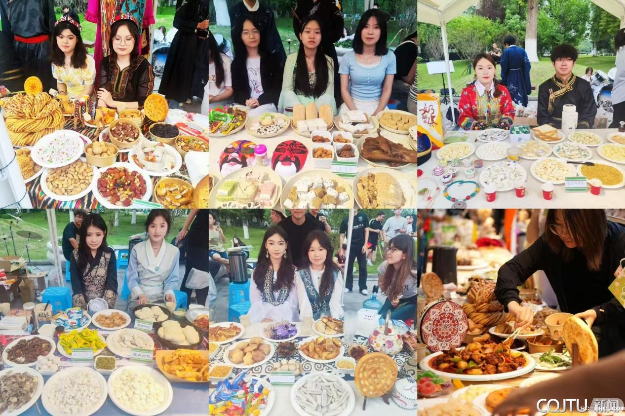 傍晚时分,科学城校区湖滨广场的美食展台前人潮涌动。新疆大盘鸡的浓香与手抓饭的馥郁交织,清炒油麦菜的翠绿映衬着炒米粉的火红,二十余道跨越地域的特色菜肴构成绚丽的文化拼图。身着不同民族服饰的同学盛情邀请在场师生品尝他们的劳动成果,分享美食背后的故事与文化内涵,拉近了各民族师生间的距离。大家在品味美食的同时,共享各民族的欢乐,深化了对“中华民族一家亲”的认同感,进一步增强了民族团结的凝聚力。
