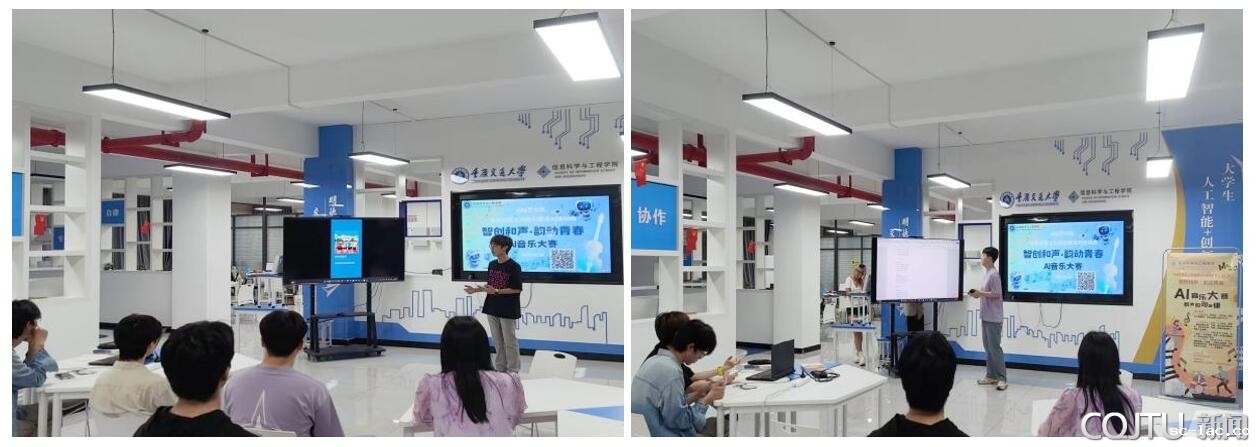 6月6日下午,信息科学与工程学院“一站式”学生社区育人项目“AI创艺社区:点亮智慧文化新引擎”系列活动之四“智创和声・韵动青春”AI音乐大赛在德园四栋人工智能+创新实践基地成功举办。这场融合科技与艺术的音乐盛宴,不仅展现了当代大学生对AI技术的创新应用,更奏响了人工智能时代的美妙乐章。