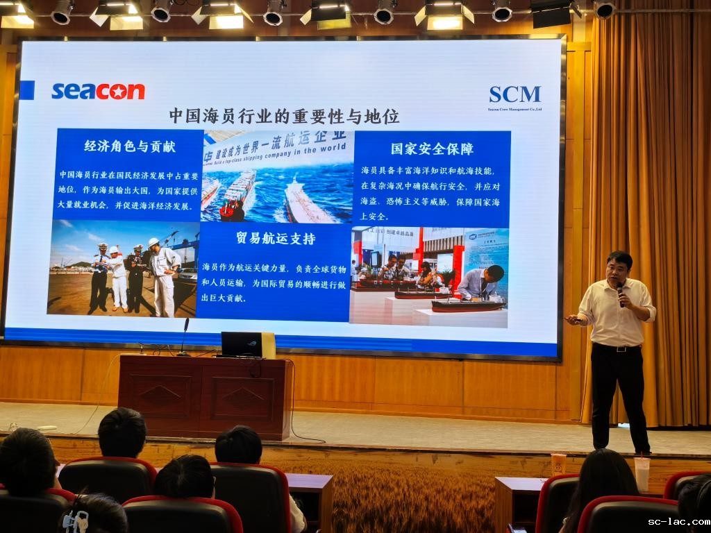 谭教授分析了当前国际航运格局与海员职业生态,指出中国海员在全球贸易体系中的战略地位与责任担当。他强调,海员不仅是国家经济命脉的重要守护者,更是维护海洋权益、推动蓝色经济发展的重要力量。面对复杂国际环境和技术变革带来的挑战,谭教授鼓励同学们坚定信念、不断提升专业素养与综合能力,以适应时代发展的新要求。