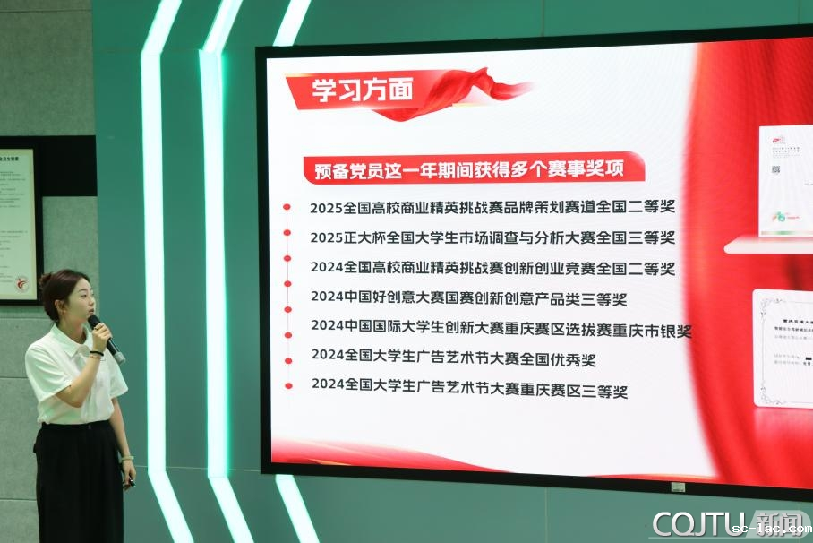成长报告会环节,盘昕怡、牟文怡、韩彦丽等13位预备党员以“交大足迹,清廉启航”为主题,通过VCR展示和PPT演讲方式汇报了预备期一年来的表现。他们依次上台,从思想进阶、学业精进、社会实践等多维度,分享了自己在党组织关怀与培养下的成长历程。