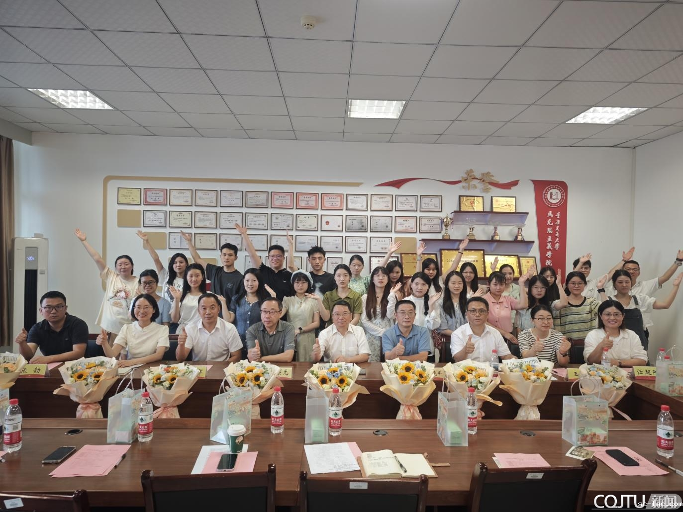 在“师说心语”环节,导师们传递“学术传承”书信:王超副教授寄语“成就光彩人生”,任超阳副教授强调“定力、毅力、能力”三力启航,张勃副教授叮嘱“保持知识渴望”,辅导员李小梅则呼吁“为爱坚守”。欢送会上,郑颖、晏婷婷代表2025届全体研究生向学院敬赠了印有“立德树人”的匾额,四个大字镌刻有力,将学生们沉甸甸的无限感恩之情凝练其中。