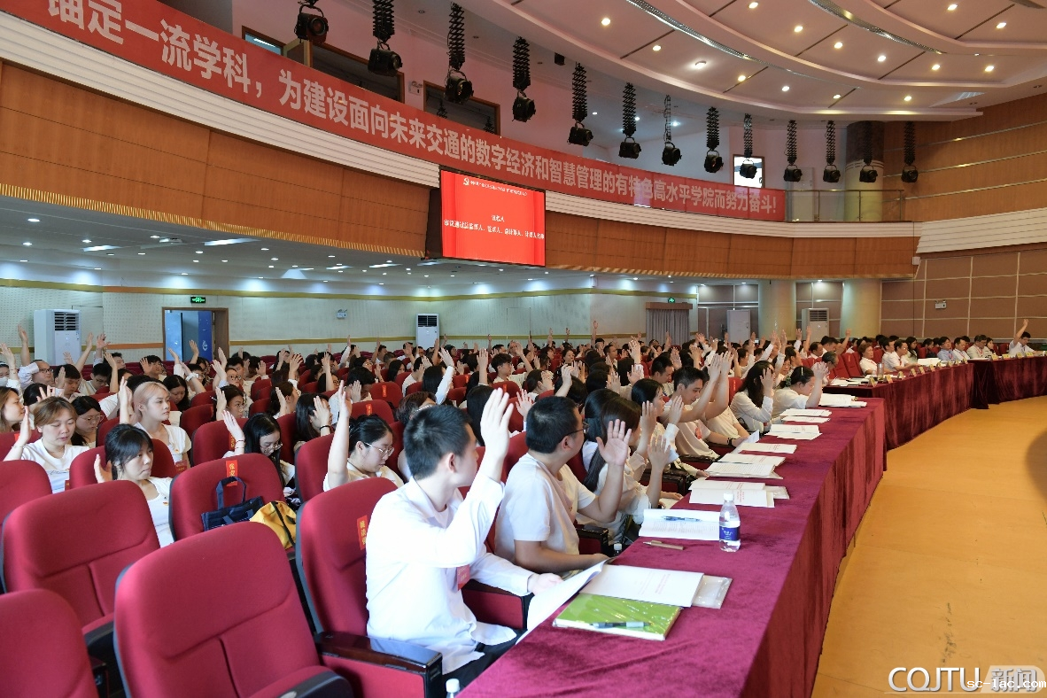本次党员大会的胜利召开标志着经济与管理学院事业发展迈入新阶段。全院师生将在新一届党委班子的带领下,以更加饱满的热情和更加坚定的信心,高举习近平新时代中国特色社会主义思想伟大旗帜,赓续红色血脉,锚定一流学科建设目标,践行“全、新、亲、实”理念,以“厚德敏行”铸魂育人,以“智通天下”践行担当,奋力书写面向未来交通的数字经济和智慧管理特色高水平学院建设新篇章,在推进中国式现代化、服务交通强国建设的壮阔征程中贡献经管力量,交出高分报表!