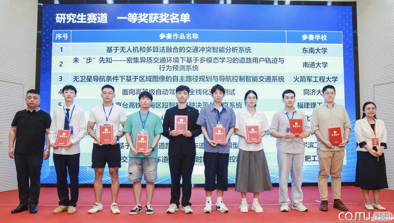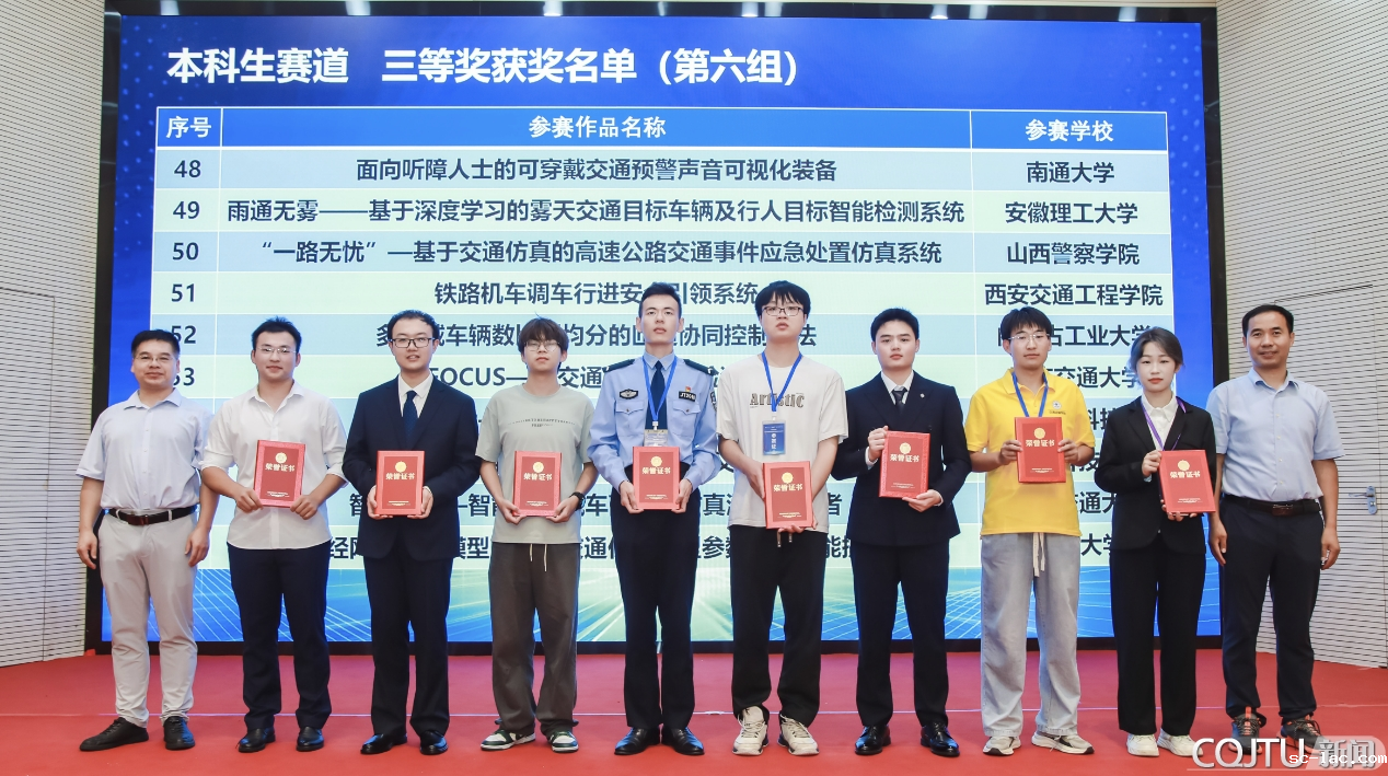 我校6支参赛队伍紧扣"福启智行,工创未来"主题,运用大数据、互联网、云计算等智慧技术聚焦交通运输行业痛点难点,提出兼具创新性、可行性与实用价值的优化方案,既展现较高专业水准与完成度,又凸显技术应用的深度与难度,充分彰显交大学子融合理论与实践的科技创新能力,以实际行动为智能交通发展贡献智慧与力量。最终我校参赛队全部获奖,取得历史最好成绩:全国一等奖2项、全国二等奖1项、全国三等奖2项,企业赛道全国铜奖1项。