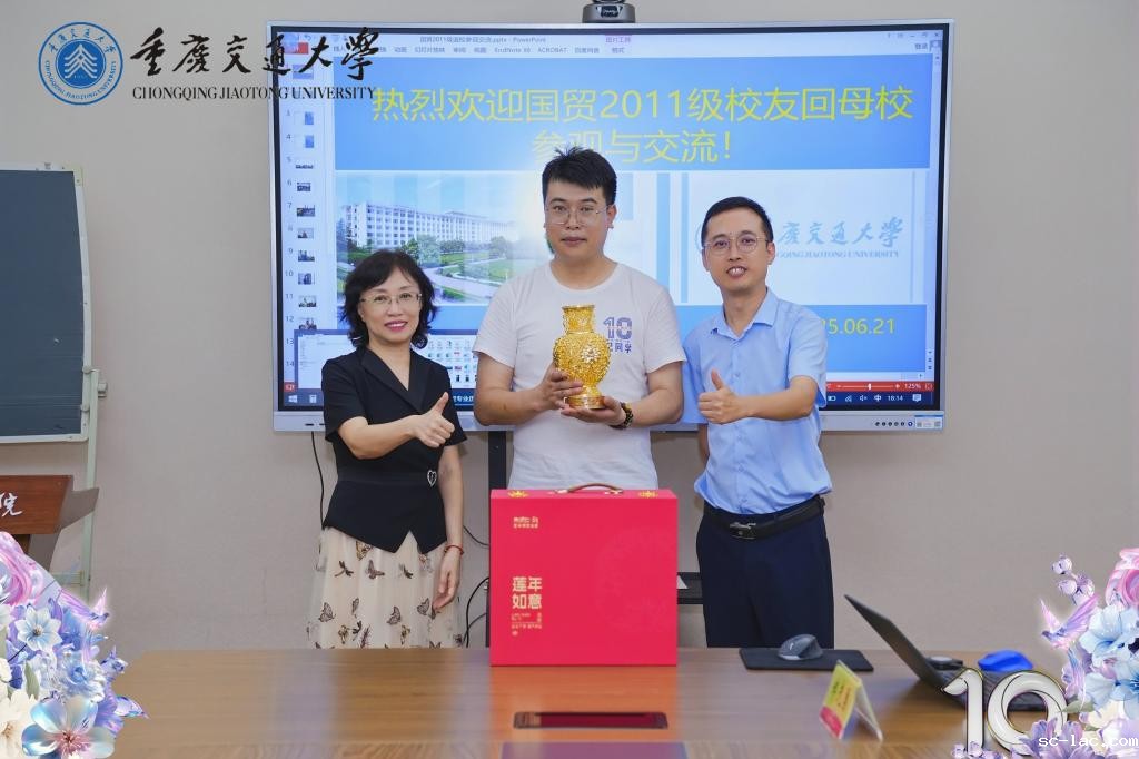 据悉,交流会前,时任2011级国贸专业辅导员李坤带领校友们参观了校史馆,回顾了学校的历史沿革、办学成果以及文化传承,让校友们深刻领悟了“两路”精神的内涵与价值。学业导师郑先勇在第二教学楼20205教室给校友们重温了一堂课,并展示了同学们在大一学业指导课上的“老照片”。此外,校友们还参观了科学城校区、图书馆、教学楼、宿舍、食堂等,漫步在熟悉的校园里,在校门等标志性建筑前合影留念,留下了美好的回忆。