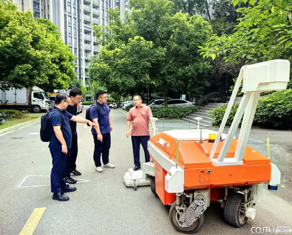 调研中,赵毅副院长一行参观了圭目机器人的研发车间,详细了解了企业在道路检测、机器人平台和数据系统等方面的研发流程与产品。工程师谭坤帅现场演示了道路健康自动检测机器人的检测过程。