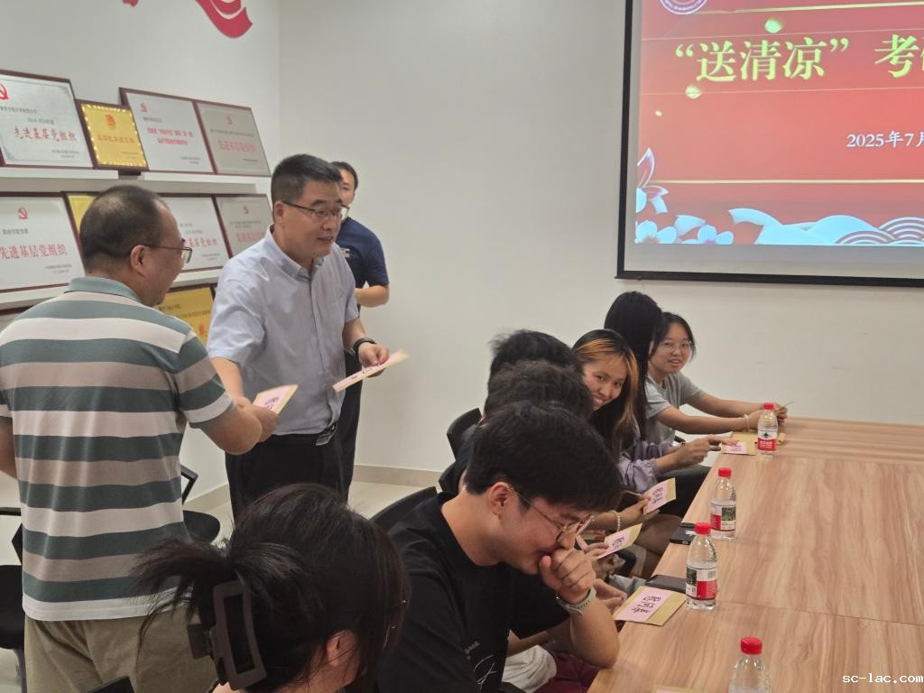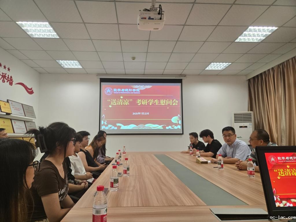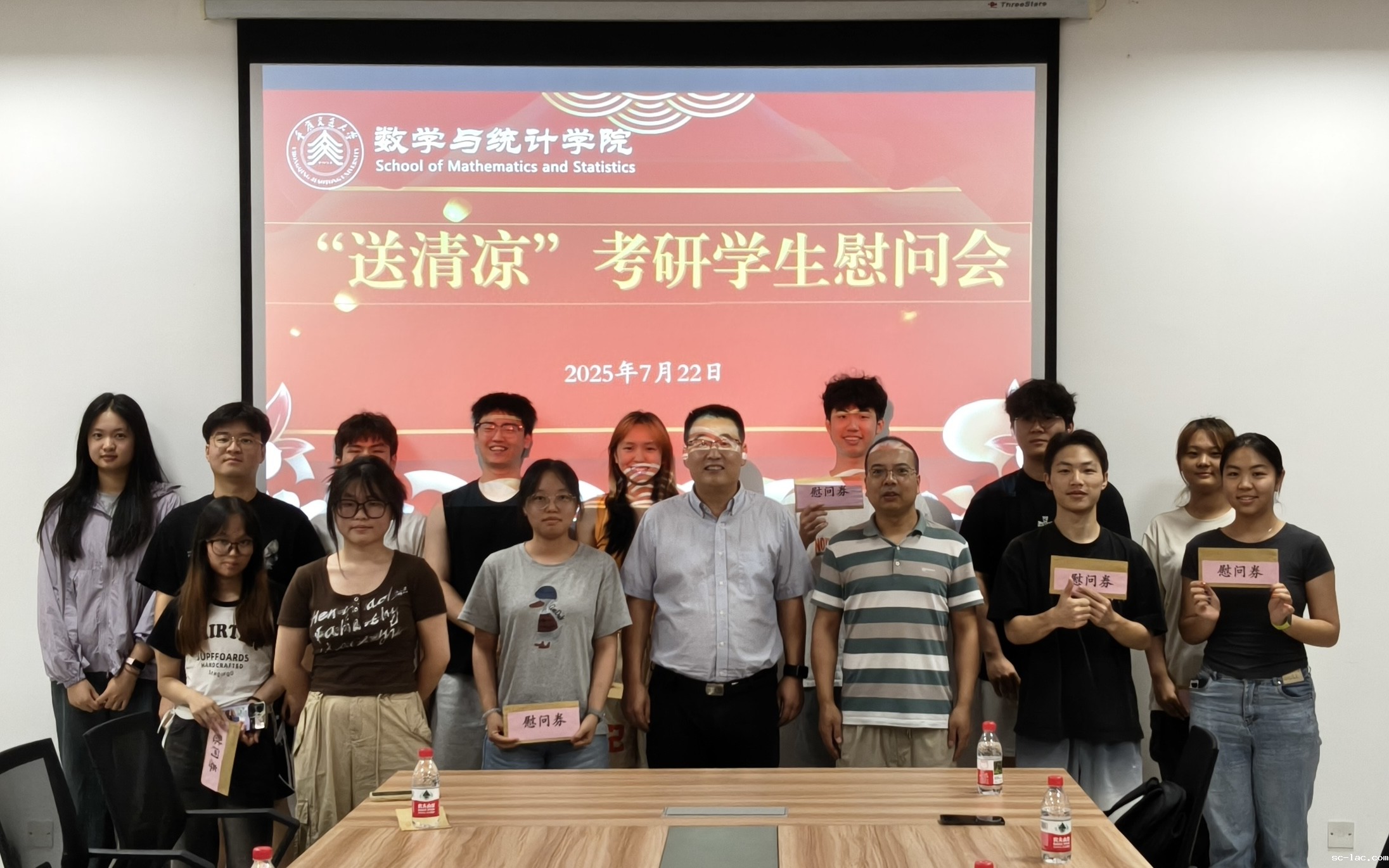 为进一步加强对暑期留校考研学子的关心与指导,助力2026届学子坚定考研信心、提升备考效率。7月22日下午,数统学院在致远楼404教室举办“‘送清凉’考研学生慰问会”。学院党委副书记马在亮、办公室主任罗二鹏出席活动。活动现场气氛热烈,充分展现了学院对考研学子的重视与支持。