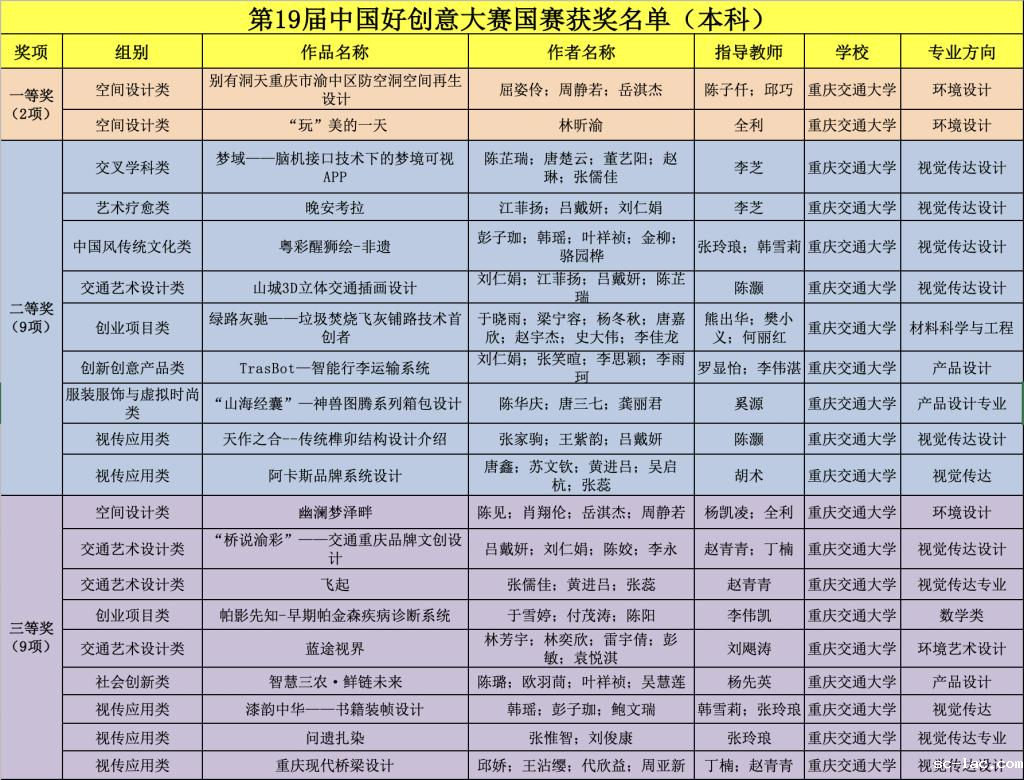 老伟德网上娱乐第19届中国好创意国赛获奖情况一览表: