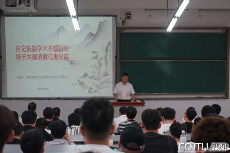 9月11日上午,信息科学与工程学院在科学城校区A01237教室举行2025级研究生入学教育与学术诚信教育。会议由学院党委副书记蒋攀主持,党委书记王辉、正处级组织员兼纪委书记郑廷友、副院长蓝章礼、学科办副主任刘洋、研究生辅导员王新、研究生导师代表蒋仕新、研究生代表莫天金及全体2025级研究生新生参会。