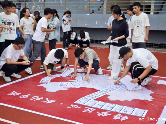 除了激烈的挑战,活动现场更充满了温馨的暖流。一幅巨型的中国地图化身为传递乡情与祝福的纽带。同学们纷纷在地图上自己家乡的省份位置,写下对亲人的思念与对祖国的祝愿。