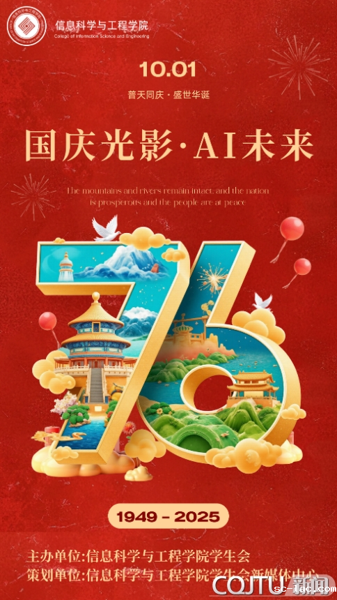 为庆祝中华人民共和国成立76周年,进一步激发学子们的爱国热情,同时将信息学科特色与人文情怀深度融合,老伟德网上娱乐信息科学与工程学院新媒体中心策划组织的“国庆光影・AI未来”线上摄影活动已圆满结束。活动以“镜头捕光、AI赋能”为核心,引导学子用独特视角记录校园里的国庆印记,用科技力量为爱国情怀注入创新表达。