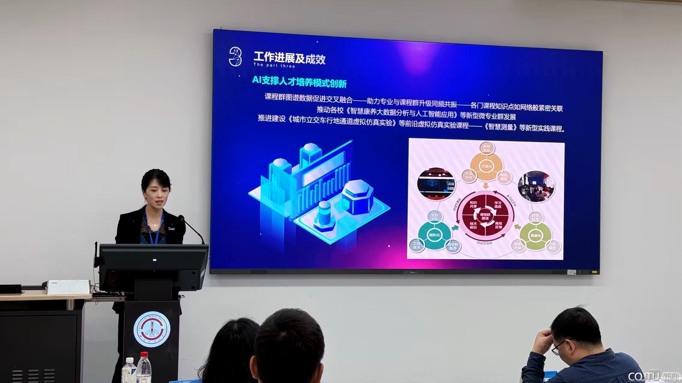 董莉莉教授应邀在大会分论坛3“成果转化与建筑教育新生态再造”,做了题目为“AI赋能建筑类专业课程建设与教学质量提升”的报告。分享了高等教育数字化教学转型的背景下利用AI工具对建筑类专业课程及教学方式进行改革的成果,解读“教师-学生-机器”三者协同的教育教学理念,结合AI技术构建知识图谱体系、多种智能体以及建筑类专业学习共享空间,形成“数、智、虚、网”四位一体的建筑类教育教学提升路径。通过优化教学资源配置、增强教学互动,重塑个性化学习模式,塑造全场景交互式学习环境,全方位促进建筑类专业人才培养质量提升,满足国家和地方对建筑类专业高层次复合型应用型人才的需求。