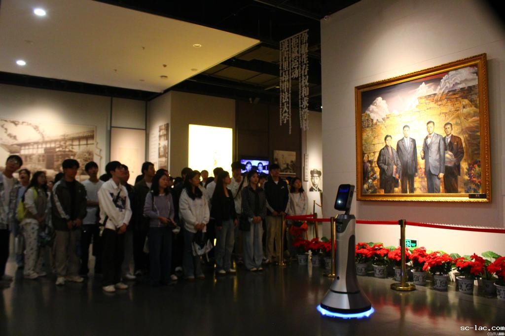 在AI讲解员的带领下,师生们走进“两弹一星”功勋展区。泛黄的工作笔记上,聂帅“再苦也要把原子弹搞出来”的批注力透纸背;精密的试验数据图表旁,摆放着他亲自绘制的导弹设计草图。“这些展品不是冰冷的文物,而是燃烧的精神火焰。”辅导员王老师指着展柜中的计算尺说,“聂帅用‘干惊天动地事,做隐姓埋名人’的担当,为我们树立了科技报国的精神标杆。”通过这样的场景互动,同学们对聂帅的担当精神有了更深刻的理解,也激发了他们对科技报国的热情。