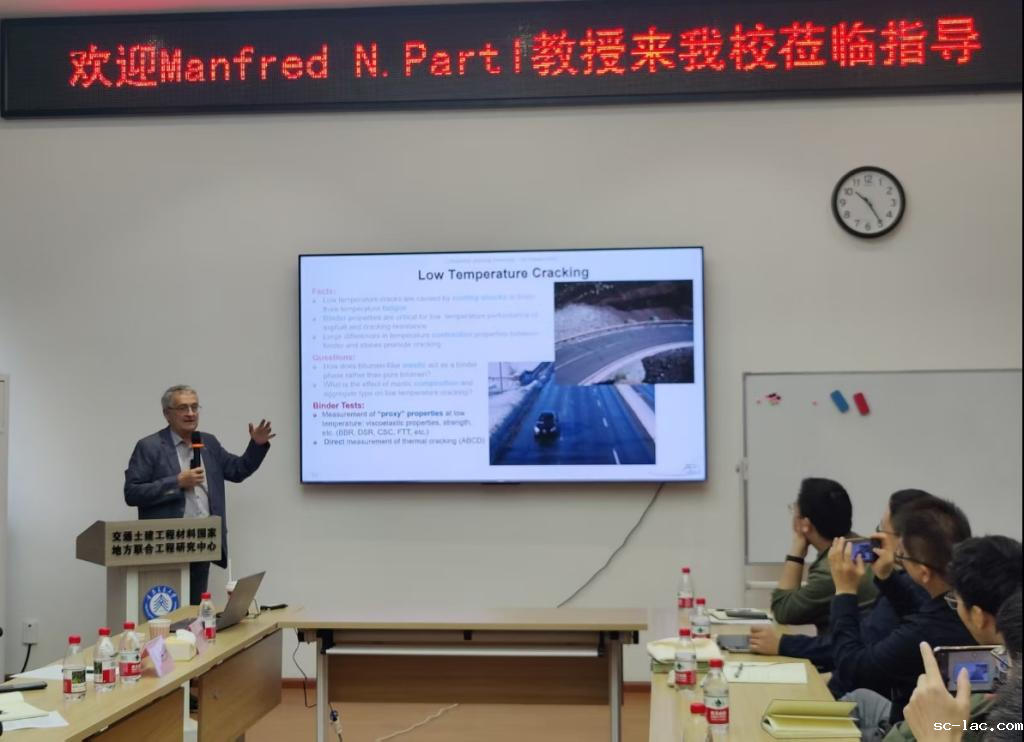 2025年10月28日,交通土建工程材料国家地方联合工程研究中心(以下简称“中心”)举办了题为Mechanical Performance of Sustainable Asphalt Pavement Materials(《可持续沥青路面材料力学性能研究前沿》)的学术讲座。受邀主讲嘉宾为瑞典皇家理工学院Manfred N.Partl教授,中心常务副主任朱洪洲教授以及相关学科的教师和研究生参加了本次学术活动。讲座由中心李睿副教授主持。