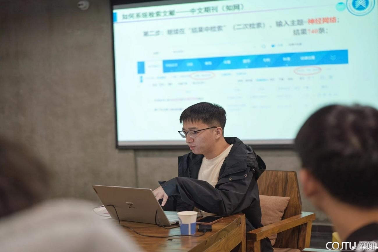 在轻松热烈的学术氛围中,王敏结合自身科研实践,系统介绍了文献检索的常用数据库与检索平台,包括Web of Science、Google Scholar、知网等,并详细讲解了如何通过关键词筛选、布尔逻辑运算等方式高效定位目标文献。